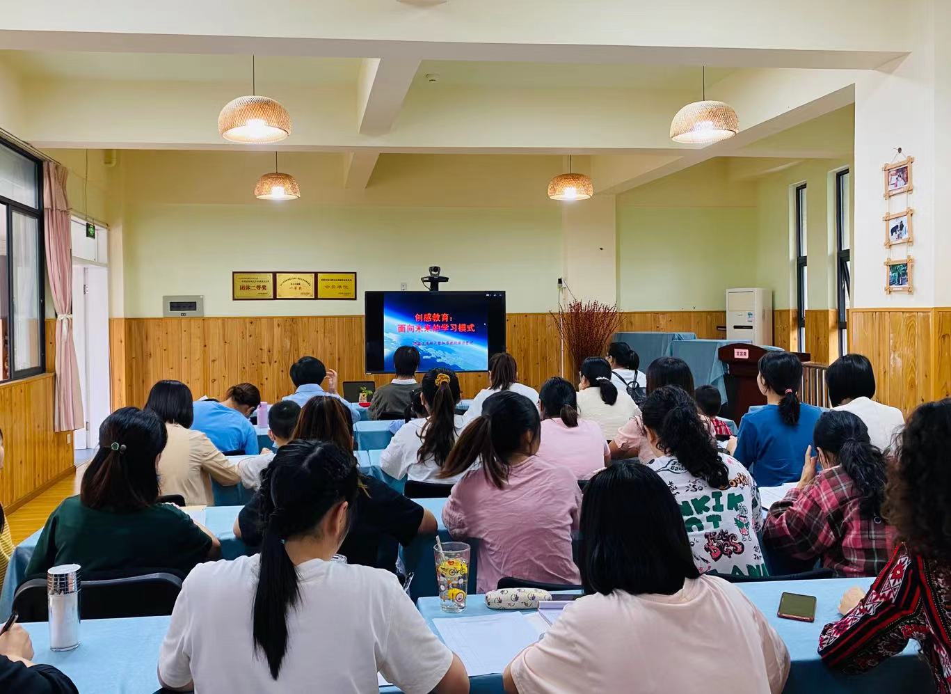2021年9月18日下午,孩子们离园后,海科幼儿园的会议室里热闹非凡。在这里,一场跨距离的学习,正连接着每一位老师和家长代表。