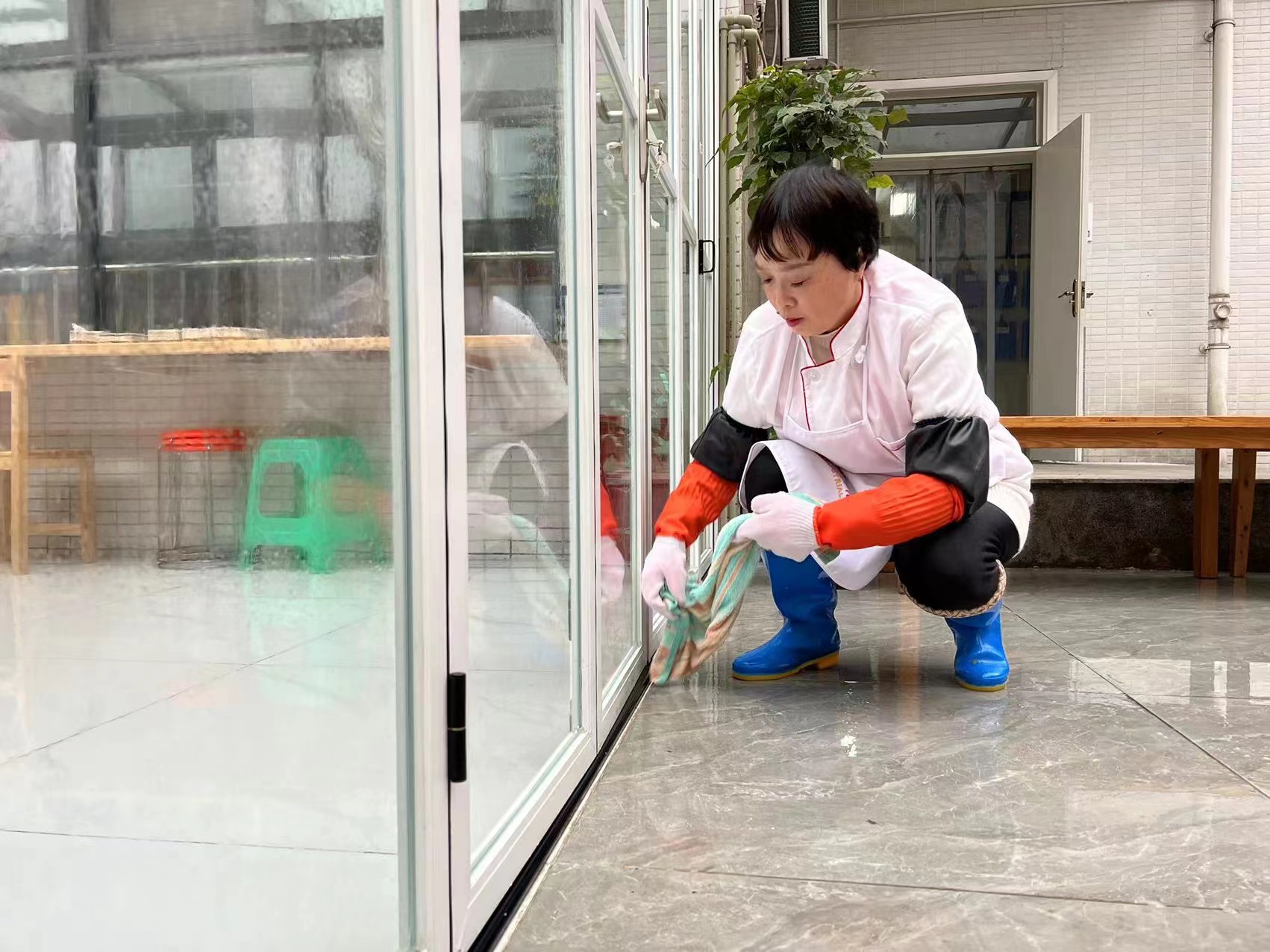 食堂人员他们不怕苦、不怕累,分工明确,将食堂里的消毒工作做到了面面俱到,各个角落都清理干净,以确保食品加工区卫生安全,杜绝了食品安全隐患。他们勤勤恳恳默默无闻地付出自己的一份力量,守护了全园师生舌尖上的安全。